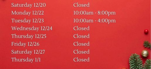 Holiday Hours ^^^